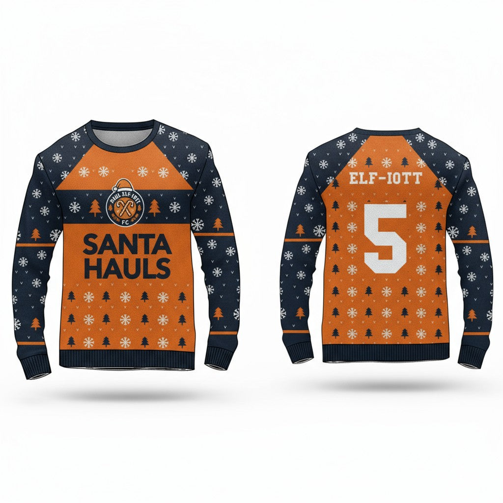 Pay tribute to one of Luton Town’s cult heroes with this Paul Elf-iott festive classic! Inspired by his commanding presence at the heart of the Hatters’ defence, this jumper blends terrace nostalgia with Christmas spirit.
